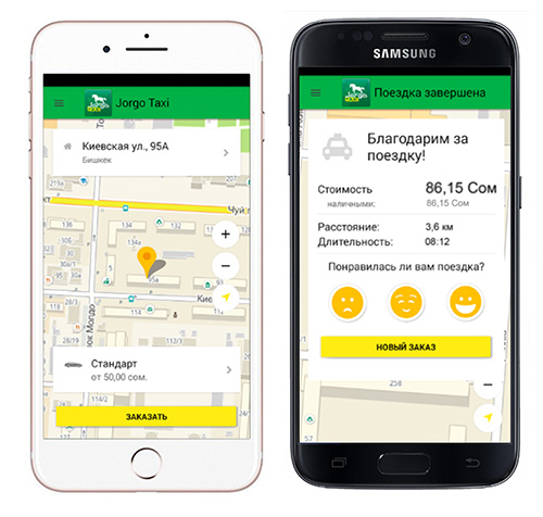 Мобильное приложение Jorgo Taxi — заказ такси в Бишкеке в 2 клика! Для вызова машины через программу достаточно нескольких нажатий на экране смартфона